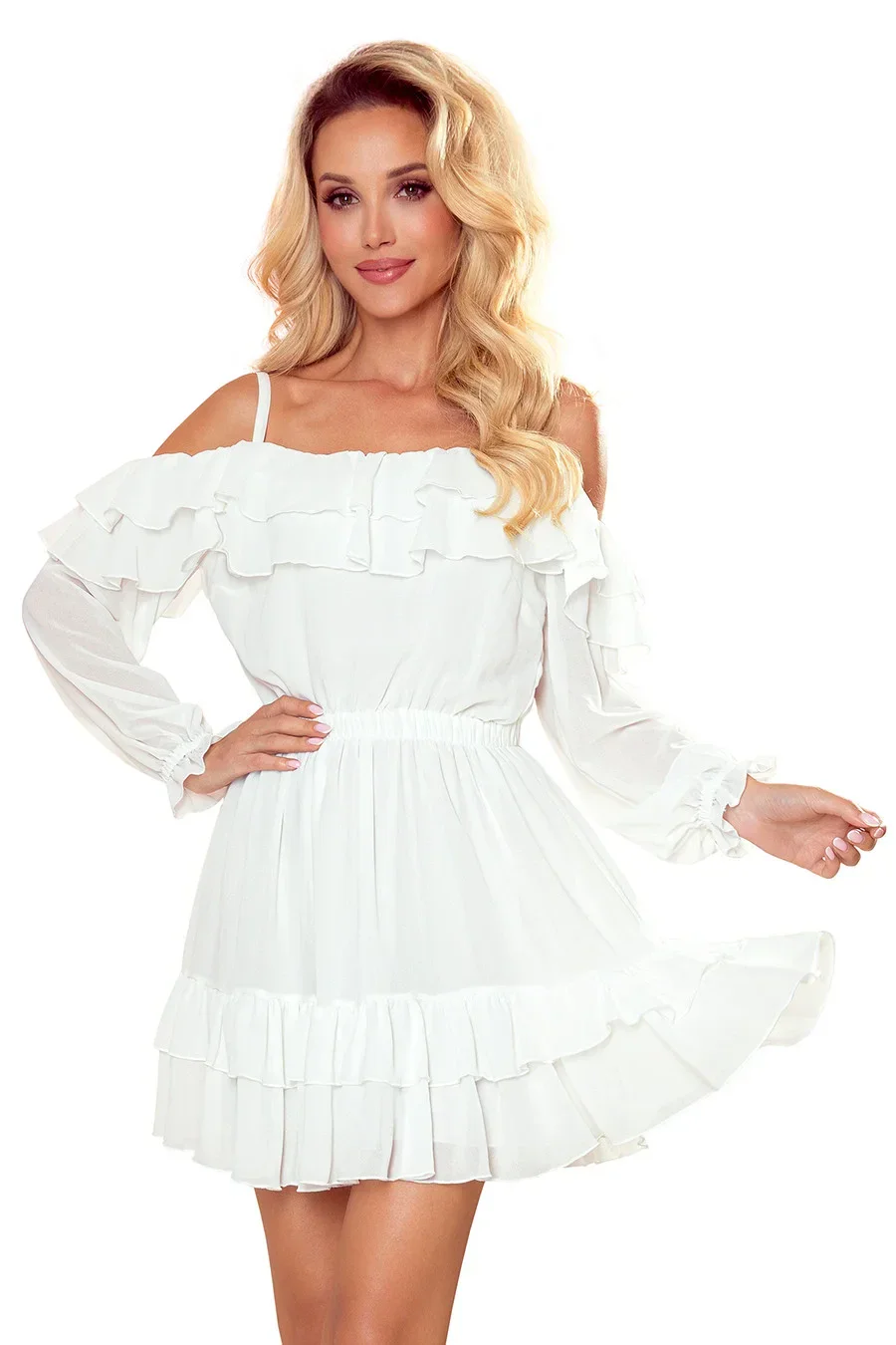 Dámské šaty 360-1 Numoco - šifonové šaty - elegantní střih s volánky - tenká ramínka - - na ramenou, páse a rukávech je našitá gumička