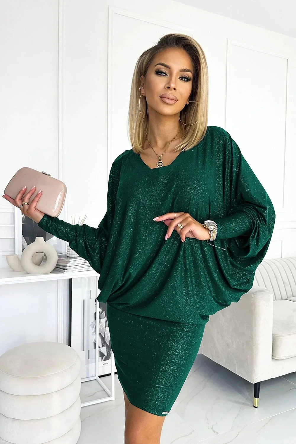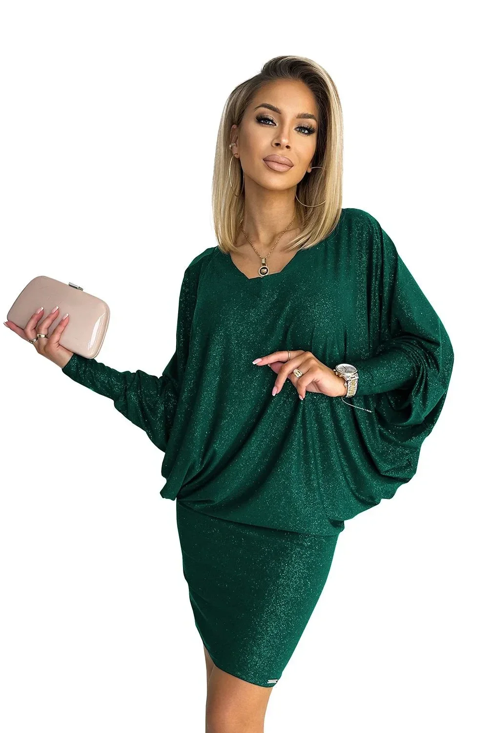Dámské šaty 402-2 Numoco - sexy dámské netopýří šaty - dlouhé rukávy - z elastického materiálu s brokátem - délka nad kolena
