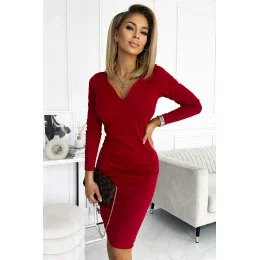 Dámské šaty 403-2 ANGELA NUMOCO - bordó barva - elegantní dámské šaty - dlouhé rukávky - zapínání vzadu na zip - hrubší příjemný materiál