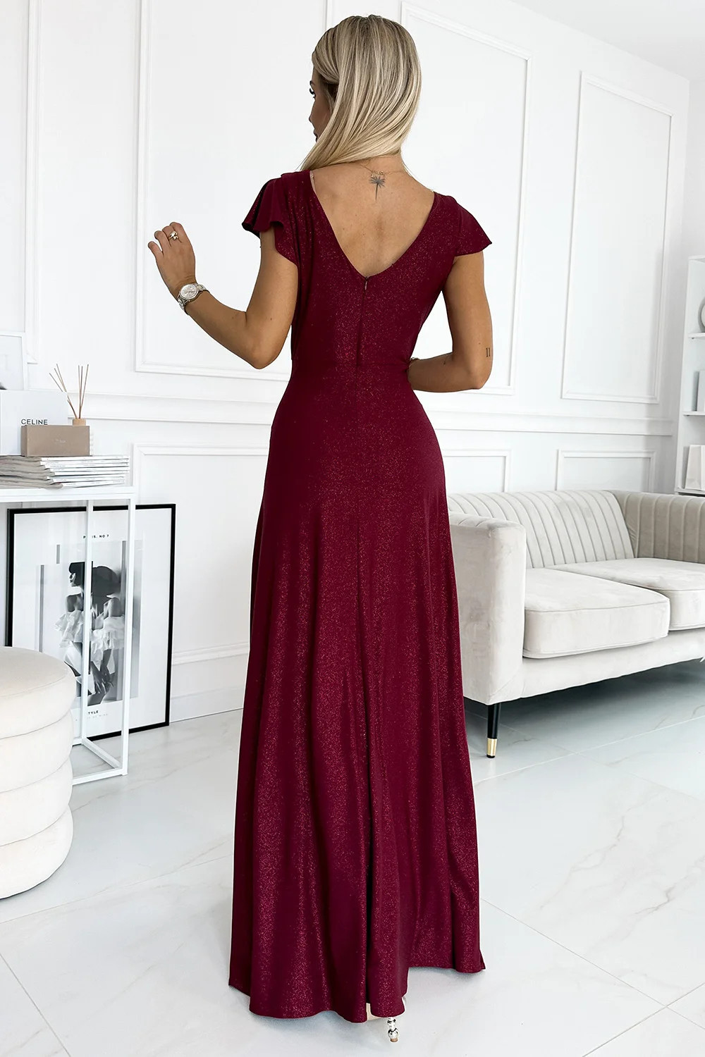 Dlouhé třpytivé maxi šaty s obálkovým výstřihem