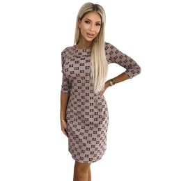 Dámské šaty 420-3 MARY NUMOCO - béžová barva - trapézová sukně - tříčtvrteční rukávy - vyrobené z příjemného elastického materiálu