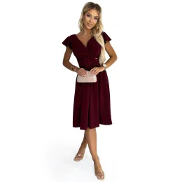 Dámské šaty 425-4 MATILDE NUMOCO - bordó barva - psaníčkový výstřih - krátké rukávy - mírně elastický materiál