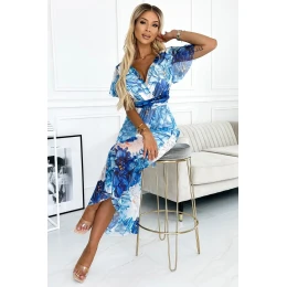 Dámské šaty 489-2 CINZIA Numoco - pohodlné šaty s psaníčkovým výstřihem - dlouhé zavazování v pase - krátký rukáv - z elastické síťoviny s podšívkou