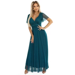 Dámské šaty 562-4 NASTIA Numoco basic - zelená barva - z tylu - vzdušné a lehké - srdíčkový výstřih - krátké rukávy - vyztužené košíčky - zavazování v pase