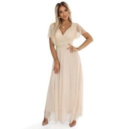 Dámské šaty 562-6 NASTIA Numoco basic - béžová barva - z tylu - vzdušné a lehké - srdíčkový výstřih - krátké rukávy - vyztužené košíčky - zavazování v pase