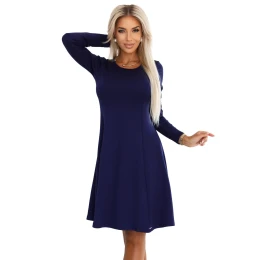 Dámské šaty 567-2 NUMOCO - tmavě modrá barva - z pružného silnějšího materiálu - dlouhé rukávy - dole rozšířené - ideální pro chladnější dny - pro každodenní nošení