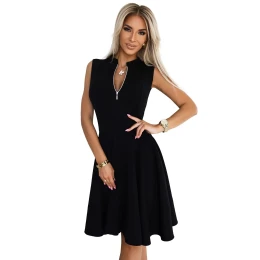 Dámské šaty 573-1 NUMOCO - černá barva - z elastické silnější tkaniny - výstřih se zipem - sukně zakončená volánkem - perfektně sedí