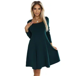 Dámské šaty 574-1 IVANA NUMOCO - zelená barva - z elastické látky - výstřih - dlouhé rukávy - dole rozšířené - perfektně sedí - pohodlné při nošení