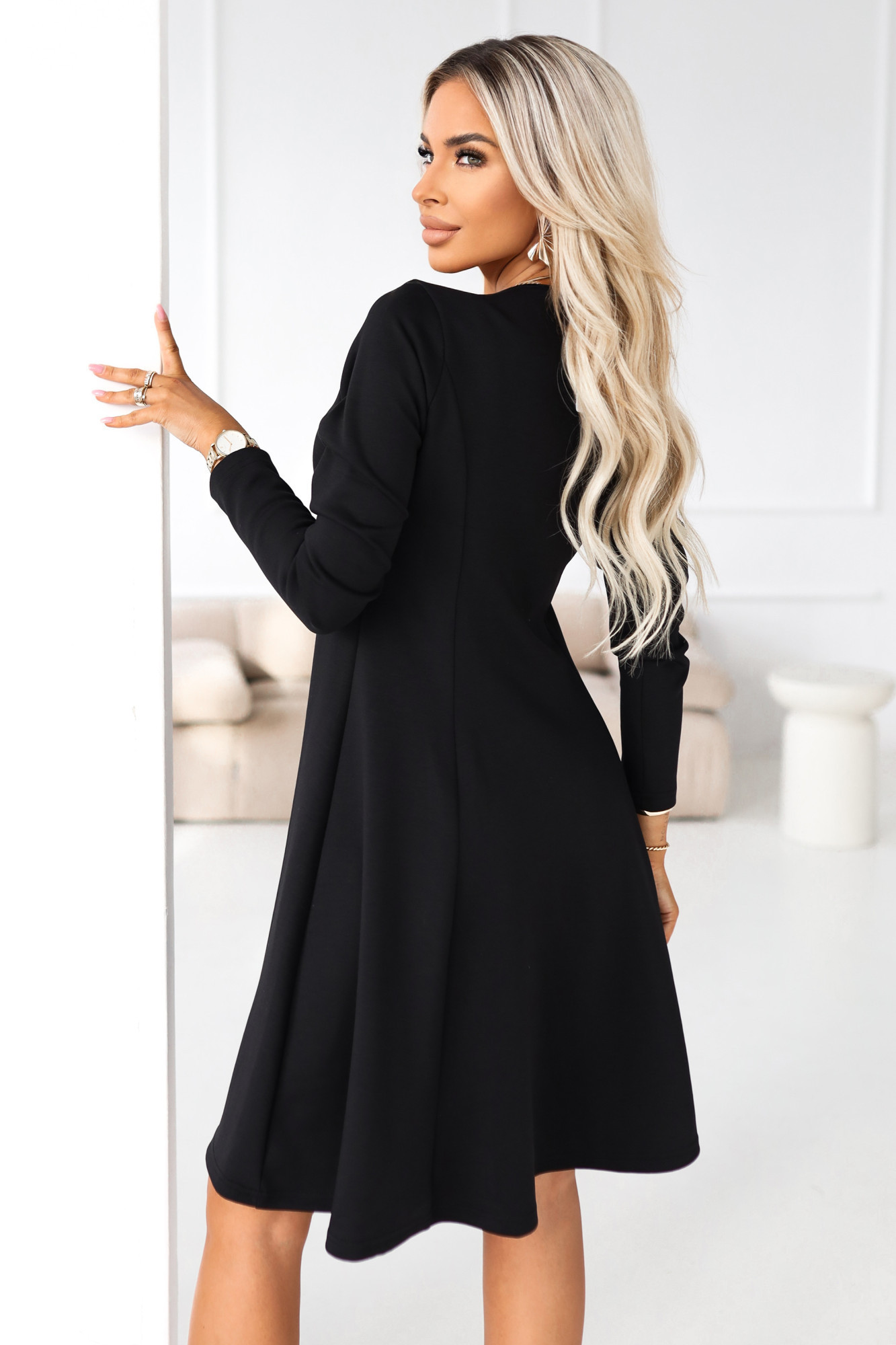 Ivana - Černé rozšířené midi šaty s výstřihem Karo - polská výroba Numoco