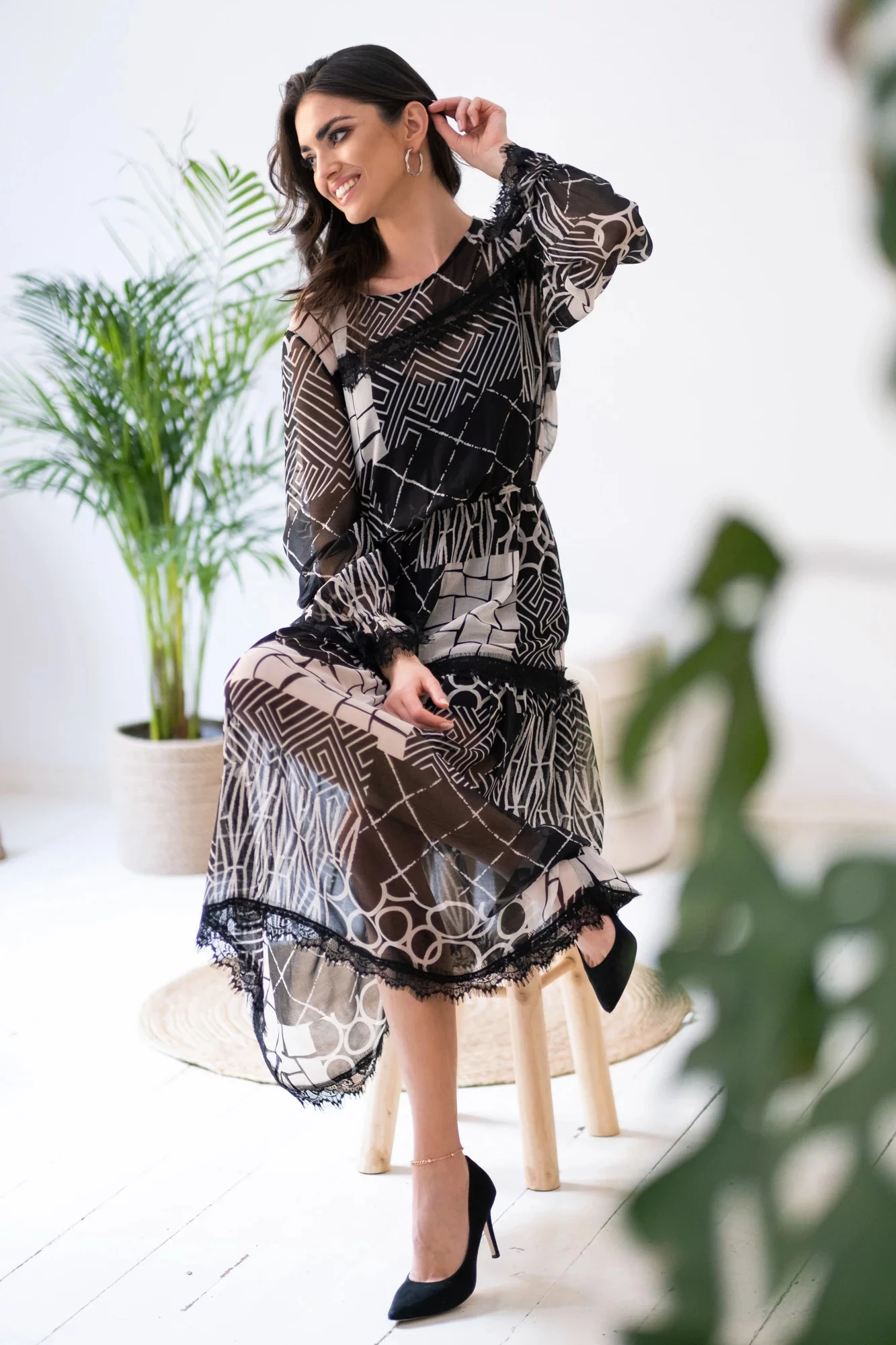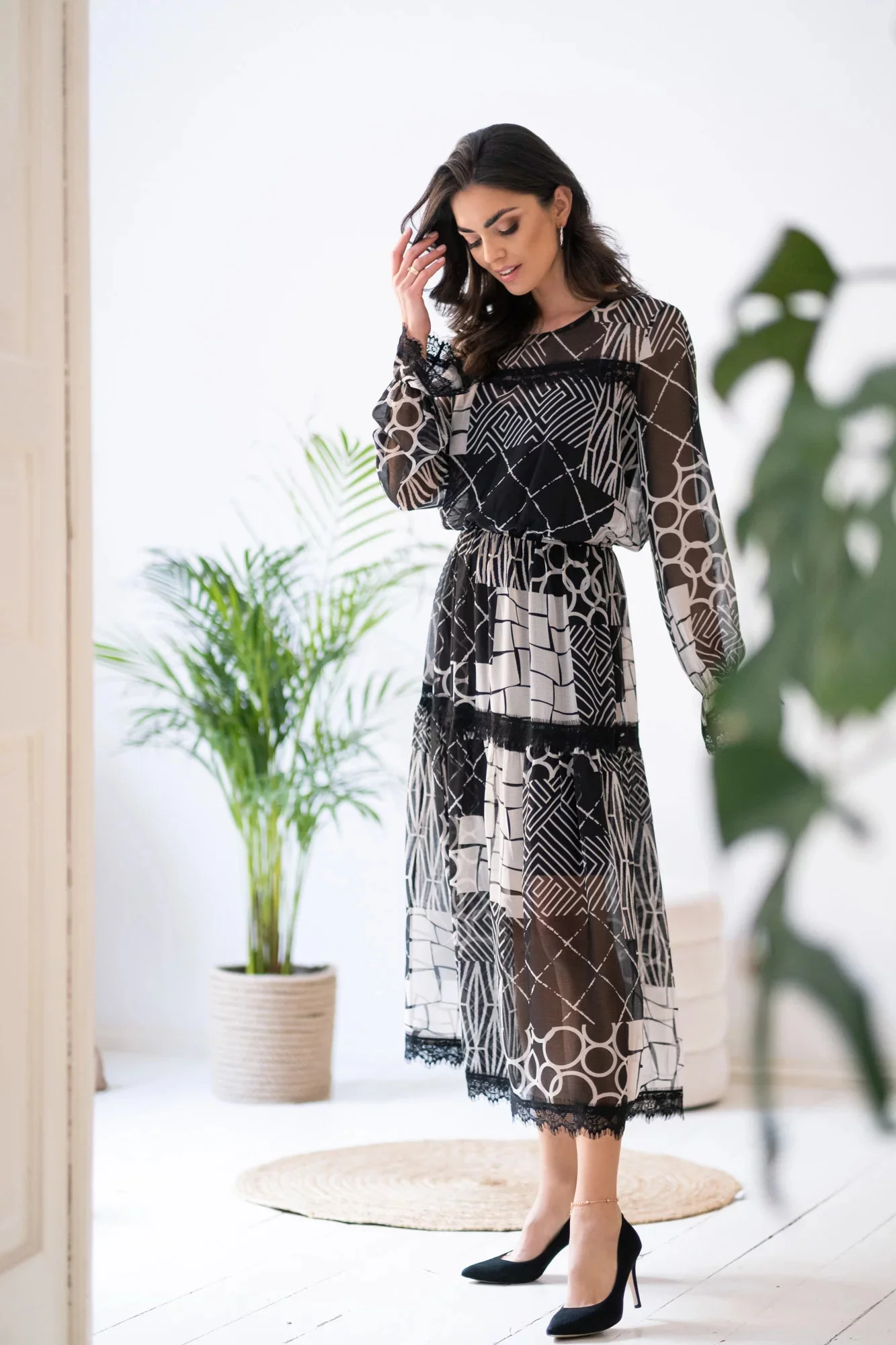 Produkt Dámské šaty model 17523485 Black Mefese - Gemini prodáváme v těchto velikostech: 40a barvách černo - bílá5904158309068