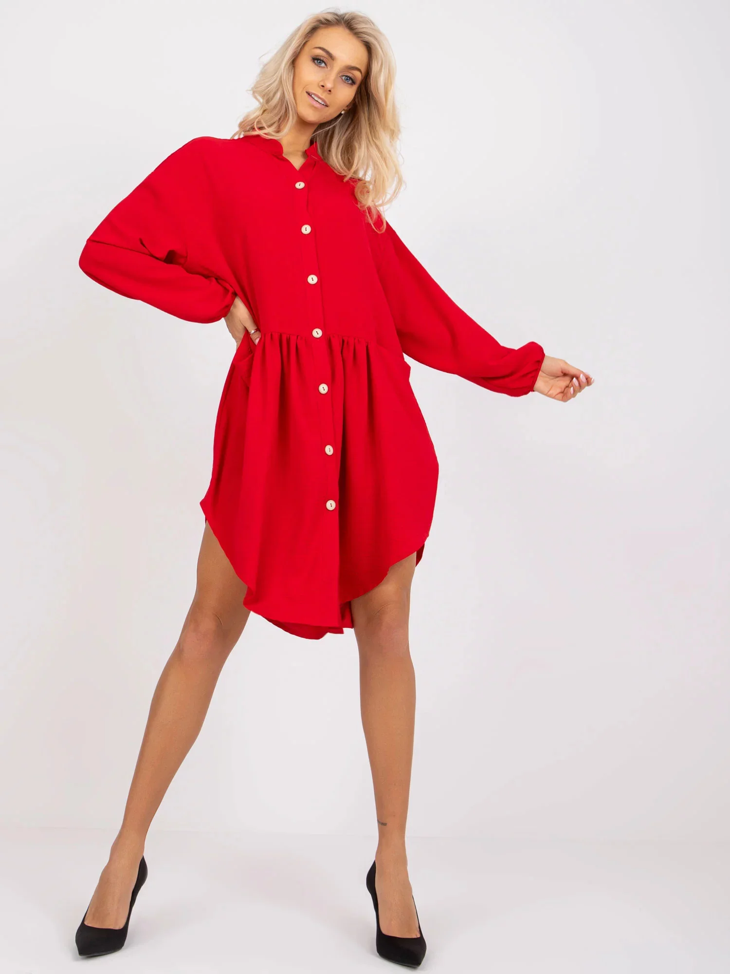 Rozměry šatů ve velikosti S/M měřené na plocho: šířka v podpaží - 59 cm, celková délka - 101 cm, délka rukávu - 55 cm.