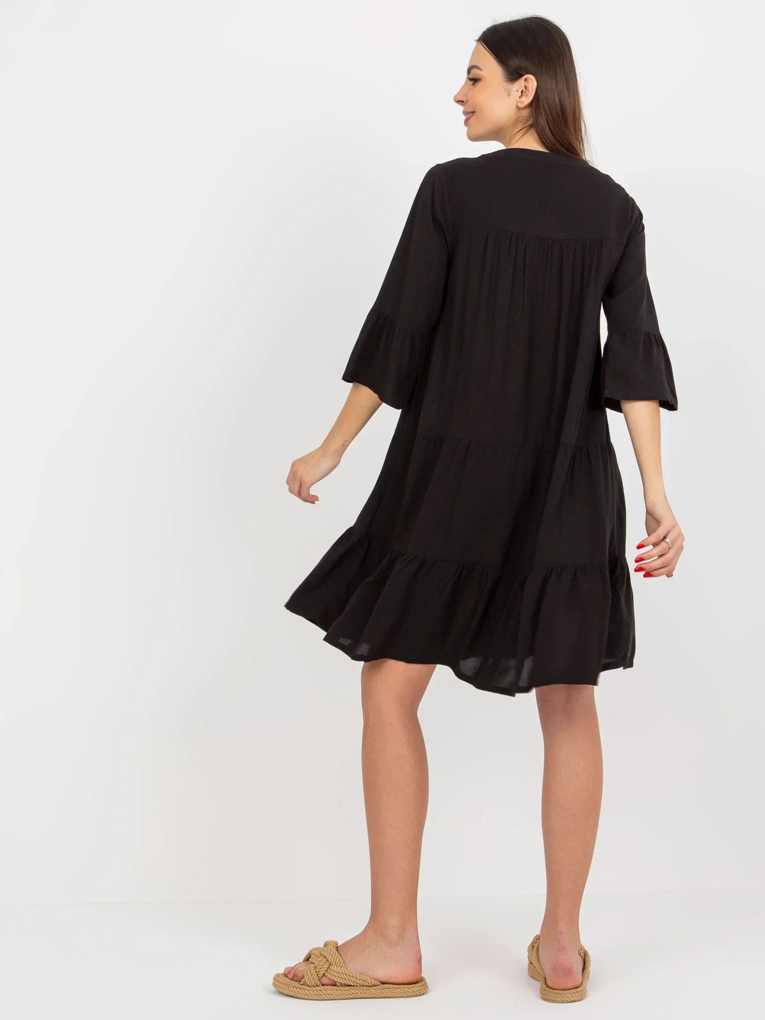 Černé letní šaty s nadměrným volánem PODLE .