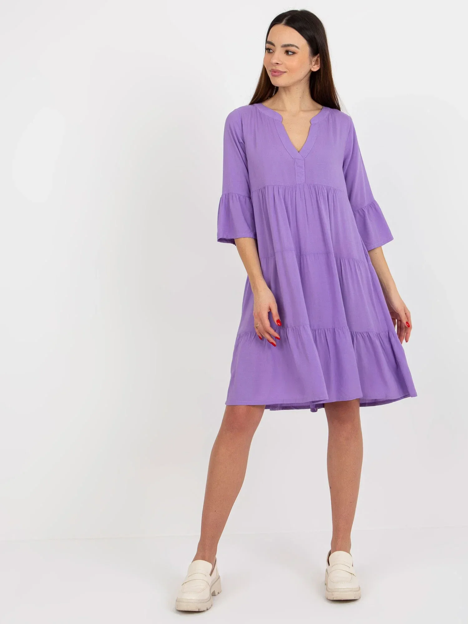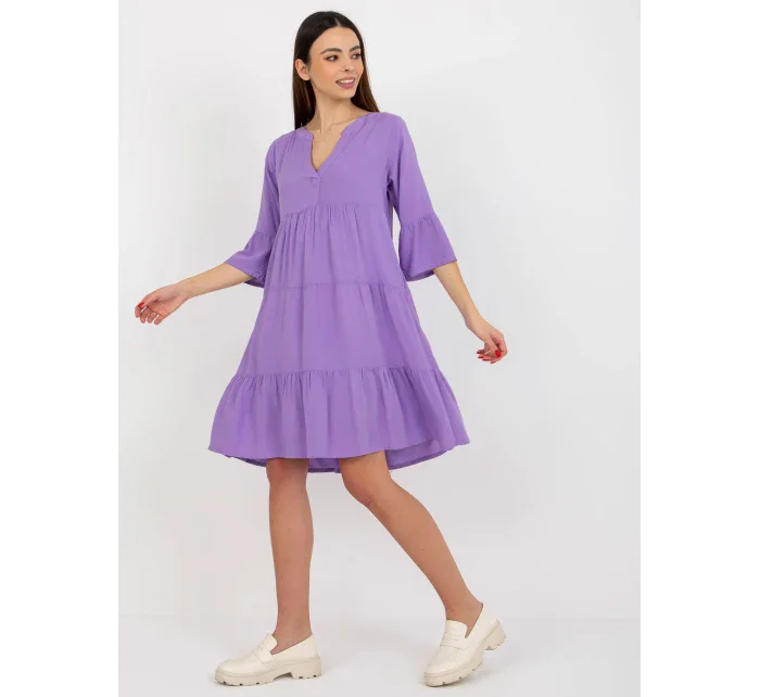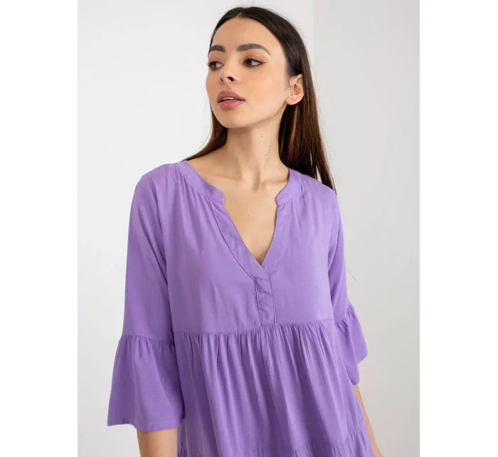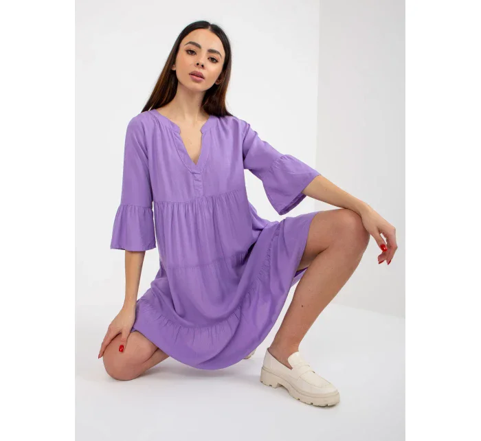 Fialové volné šaty s volánkem a výstřihem do V SUBLEVEL .