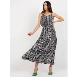 Černé maxi šaty se vzorovaným volánem SUBLEVEL .