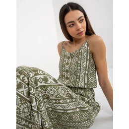 Khaki maxi vzorované šaty bez ramínek PODLE ÚROVNĚ .