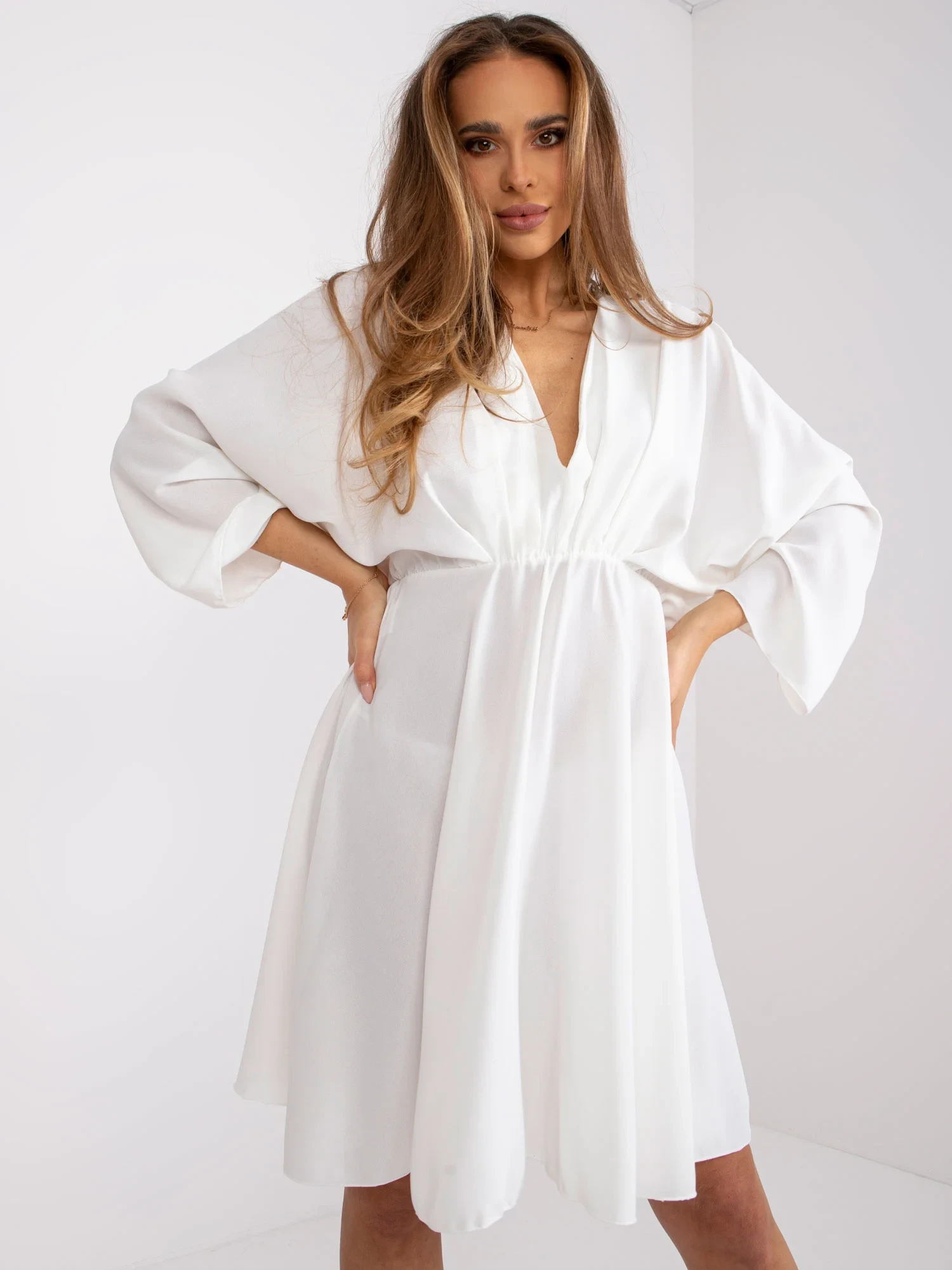 Modelka má na sobě jednu velikost. Rozměry modelky: výška 167 cm, prsa 82 cm, pas 59 cm, boky 83 cm.