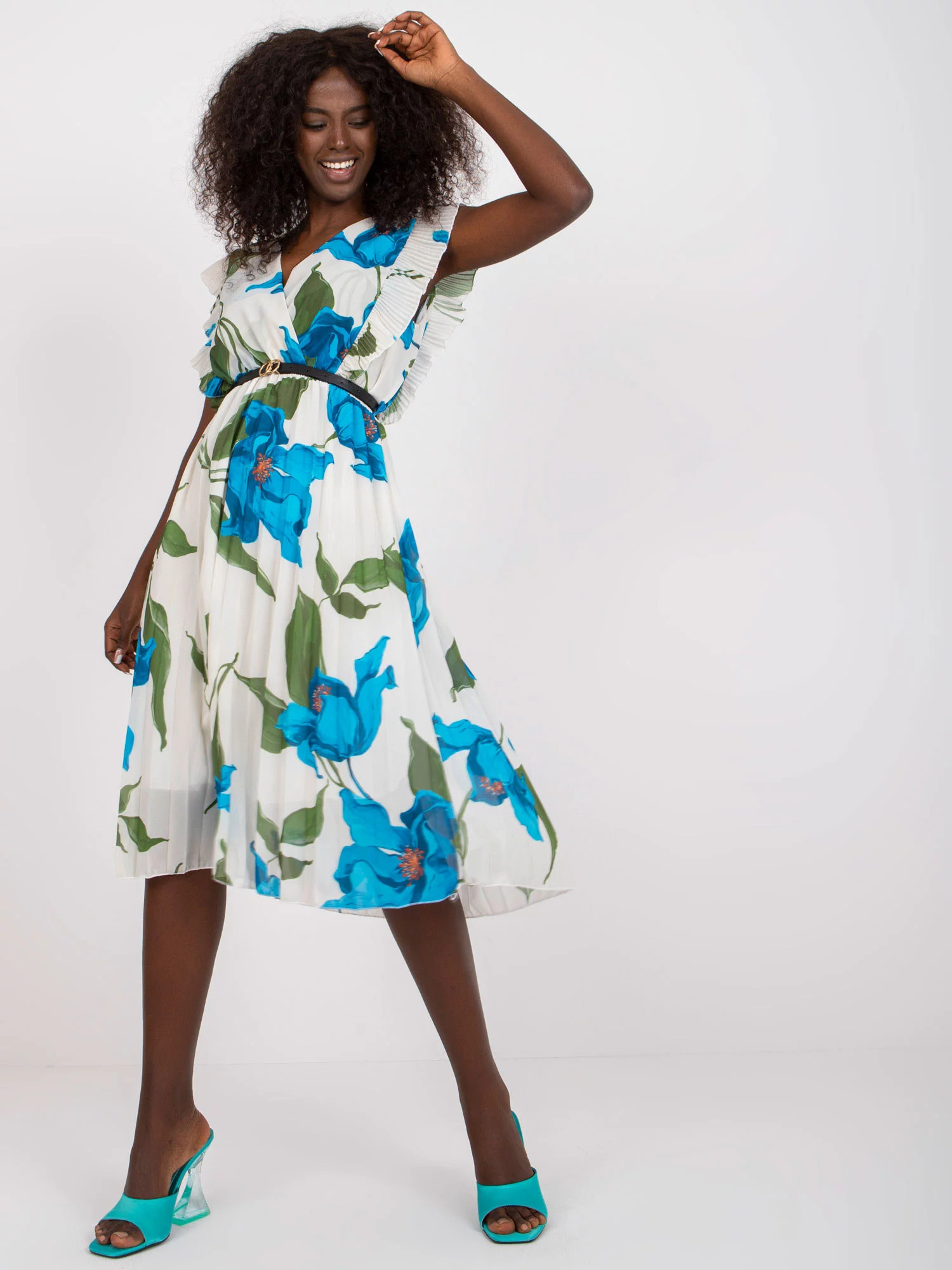 Modelka má na sobě jednu velikost. Rozměry modelky: výška 168 cm, prsa 82 cm, pas 62 cm, boky 93 cm.