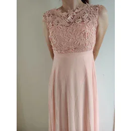 Společenské dámské šaty. Vrchní část z luxusní krajky. Zadní část šatů z prošívané gumy pro komfortní obepnutí postavy. Spodní část z růžového tylu. Délka až po zem.