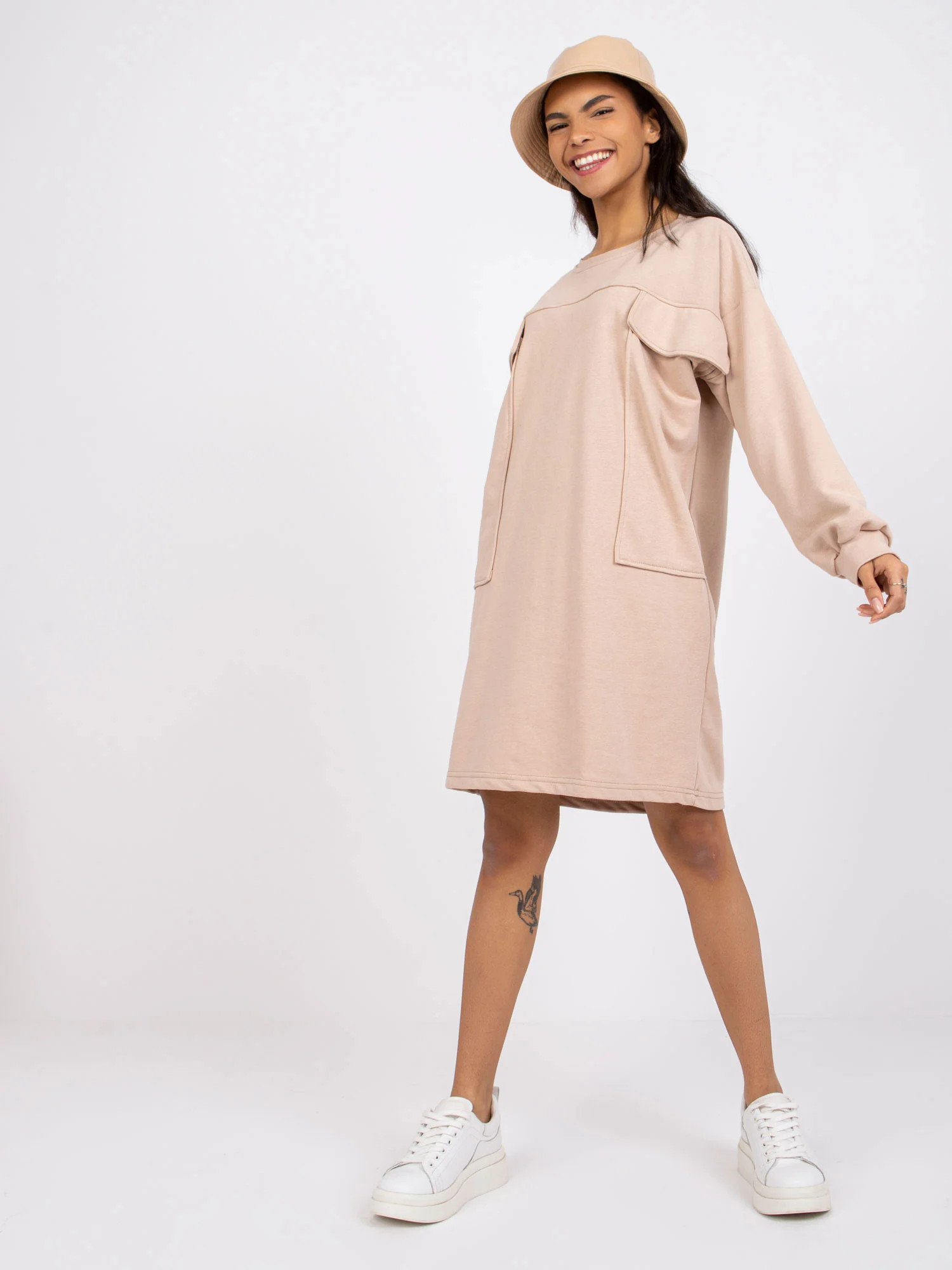 Modelka má na sobě jednu velikost. Rozměry modelky: výška 161 cm, poprsí 81 cm, pas 63 cm, boky 89 cm.