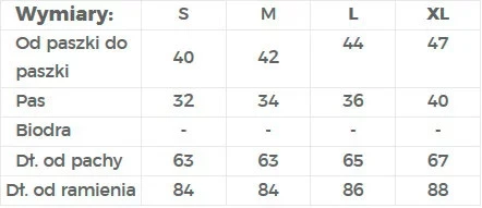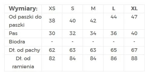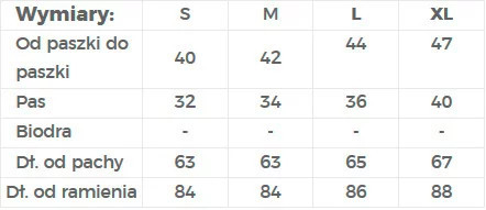 | Od podpaží k podpaží | 40 | 42 | 44 | 47 |