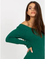 Tmavě zelené dámské základní šaty z žebrovaného materiálu.