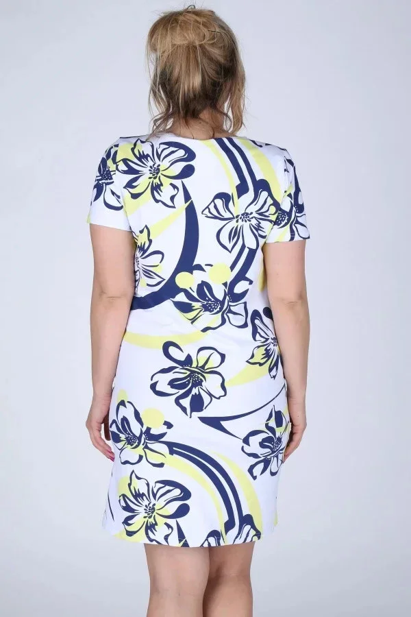 Dámské šaty pro plnoštíhlé. Nádherné šaty v krásných barvách. Tento model šatů má krátký rukávy a kulatý výstřih. Délka šatů je nad kolena. Tento model můžete obléct na letní párty, oslavy či jen tak do města.