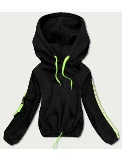 - Model v černé barvě s ozdobnou páskou na kapuci a jemným logem výrobce na přední straně.