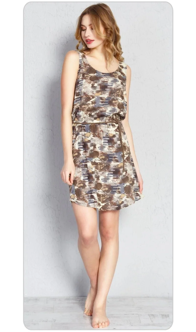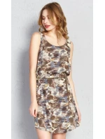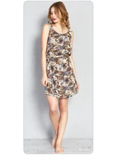 Dámské letní šaty na ramínka Jenny. Šaty mají široká ramínka a jsou vzorované v pase na zavazování. Materiál je poddajný a jemný na dotek.