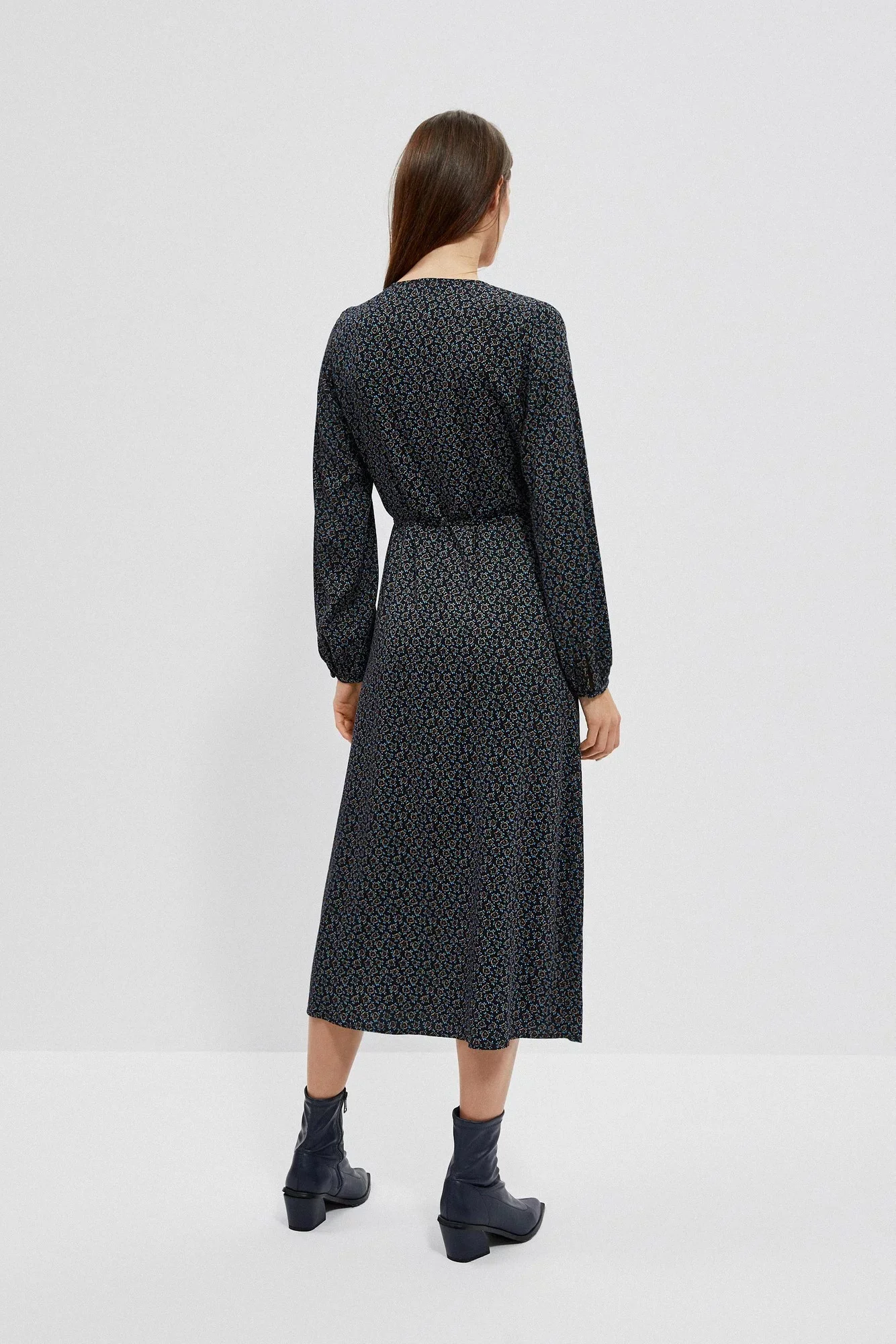 Bílé šaty. Hladký materiál, žádné vzory. Krátké volánové rukávy. Výstřih do V, zdobený krajkou. Z viskózy, lehkého materiálu zdobené krajkou. Zapínání na zip pro snadné nazouvání. Navíc má podšívku. Rozšířený střih, směrem dolů se mírně rozšiřující. Délka nad kolena. Ideální volba pro zvláštní příležitosti a významné události.