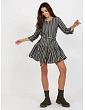 Tmavě šedé pruhované koktejlové šaty s vázáním .