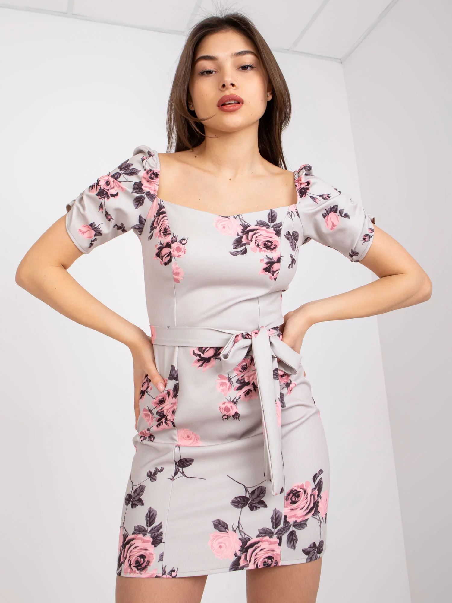 doplňky: pásek, všitý zadní zip, záhyby na rukávech