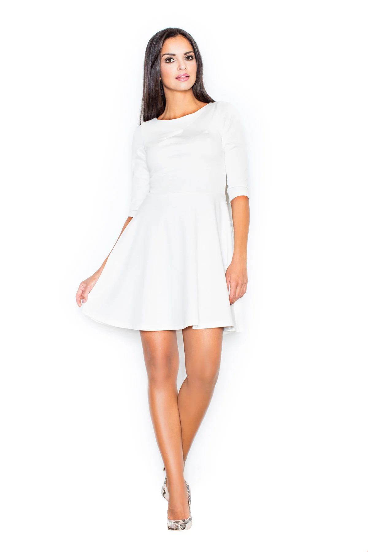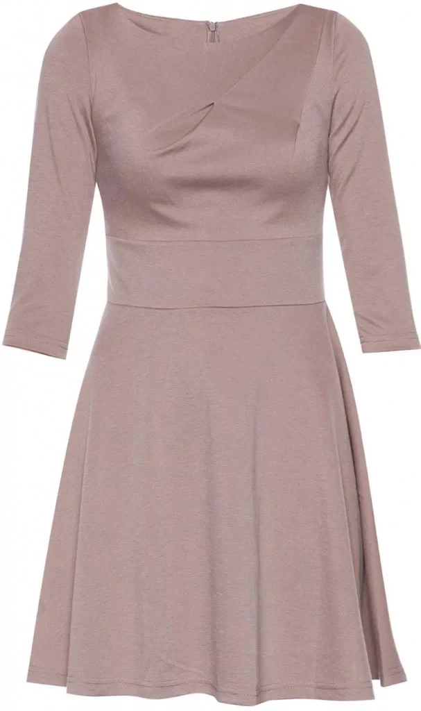 Dámské šaty mají 3/4 rukávy a lehce nařasenou sukni.