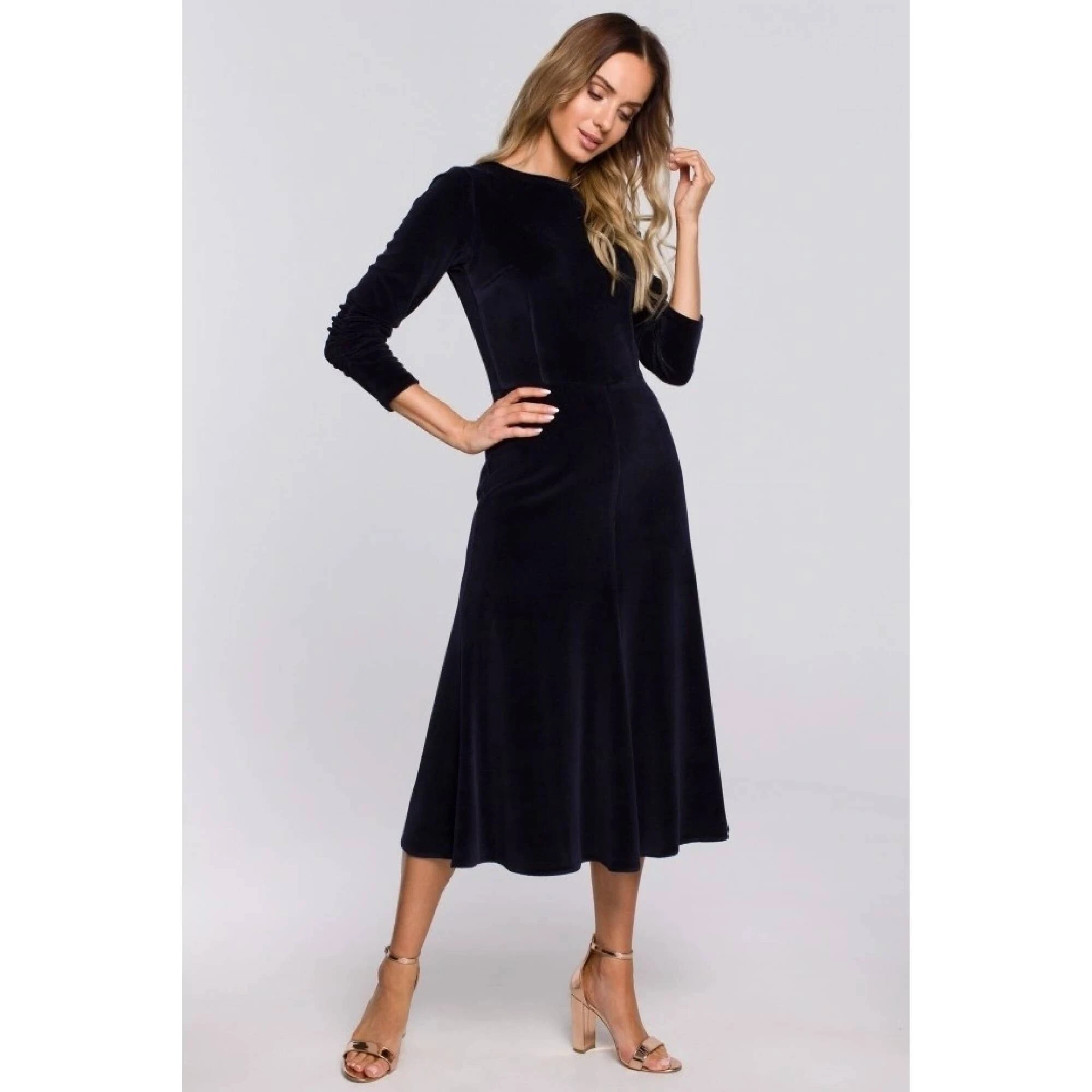 Jsou klasické, elegantní a ze sametu! Tento nádherný kousek vám bude krýt záda při všech příležitostech na konci roku. Díky vypasovanému střihu a jemně nabíraným rukávům jsou velmi ženské a elegantní. PODROBNOSTI O VÝROBKU: úpletová tkanina - samet vypasované midi šaty s áčkovou sukní 7/8 dlouhé rukávy s nabíranými detaily skrytý boční zip bez podšívky naše modelka měří 171 cm a nosí velikost S