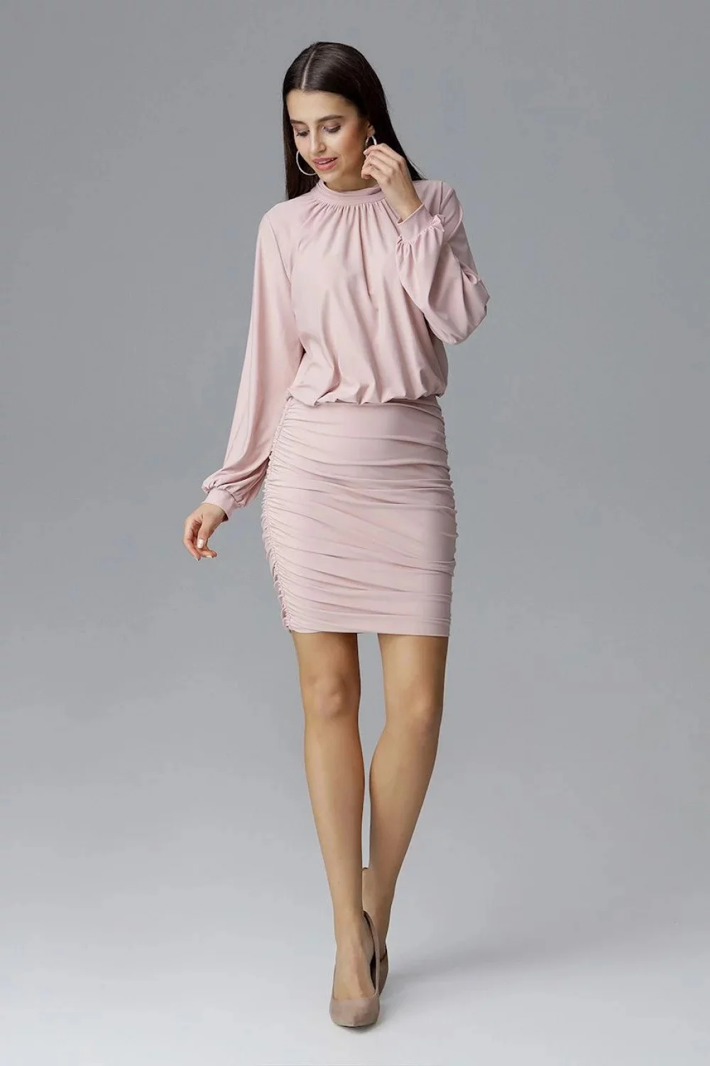 Produkt Dámské šaty M635 - Figl prodáváme v těchto velikostech: L-40a barvách pudrovo-růžová5902194361354