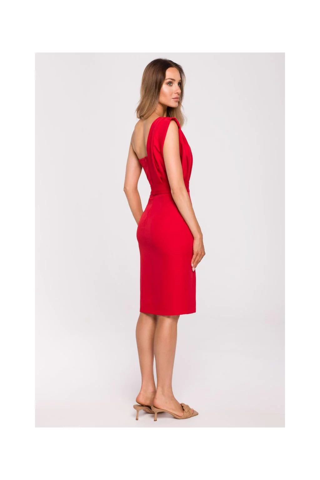 Klasické kousky nemusí být nudné, extravagantní detaily jen pozvednou elegantní vzhled. Tyto šaty tužkového střihu s řaseným detailem na jednom rameni a páskem na zavázání jsou krásným designem pro odvážné a sebevědomé ženy.Naše modelka je vysoká 171 cm a nosí velikost S
