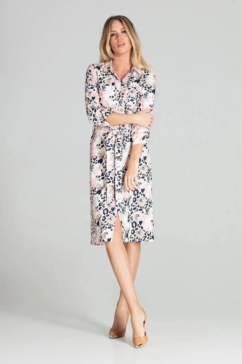 Produkt Dámské šaty M703 - Figl prodáváme v těchto velikostech: 42/XLa barvách béžovo/hnědá5902194380034