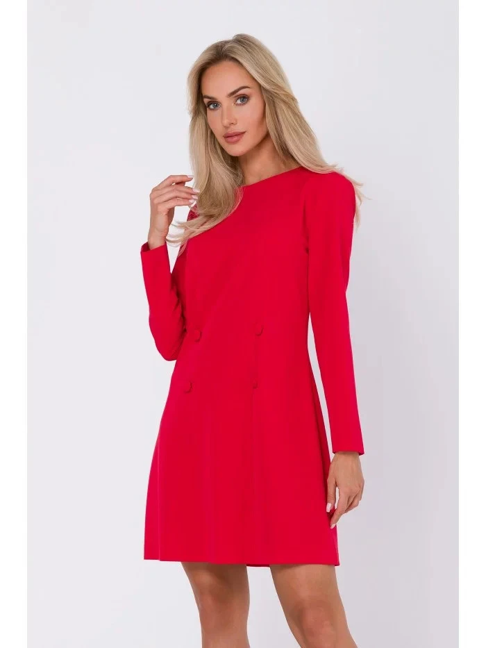 INFORMACE O PRODUKTU: tkaný materiál šaty s ozdobnými knoflíky vpředu výstřih s posádkou dlouhé rukávy délka nad kolena skrytý zip na zádech bez podšívky naše modelka je vysoká 171 cm a nosí velikost S Navrženo a vyrobeno v Polsku