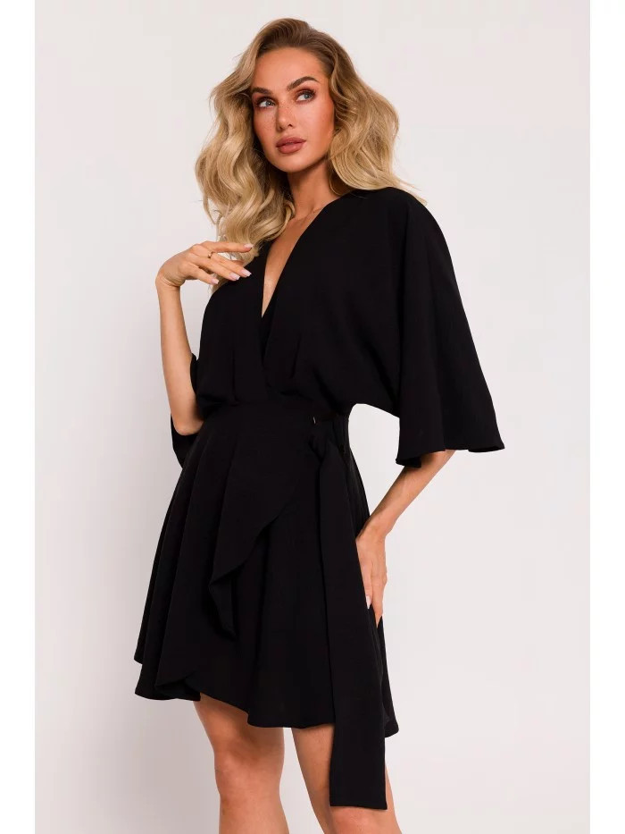 INFORMACE O PRODUKTU: tkaná krepová tkanina mini délka šatů se zavazováním ve výstřihu řasení vpředu zakončené volánkem krátké elastické rukávy skrytý zadní zip bez podšívky naše modelka měří 171 cm a nosí velikost S navrženo a vyrobeno v Polsku