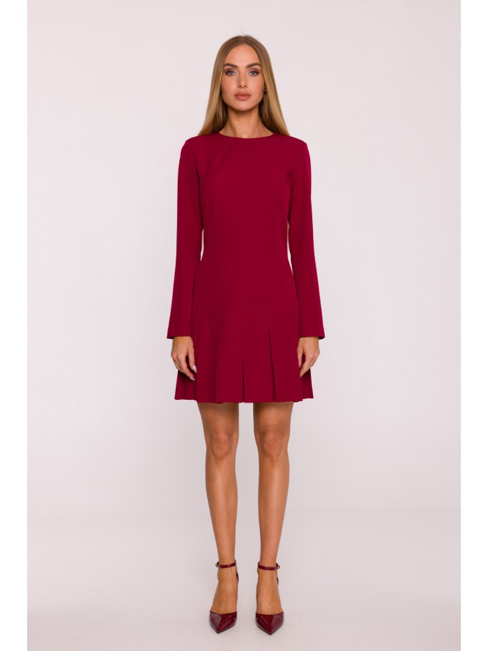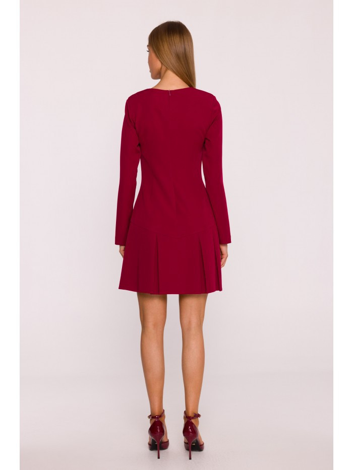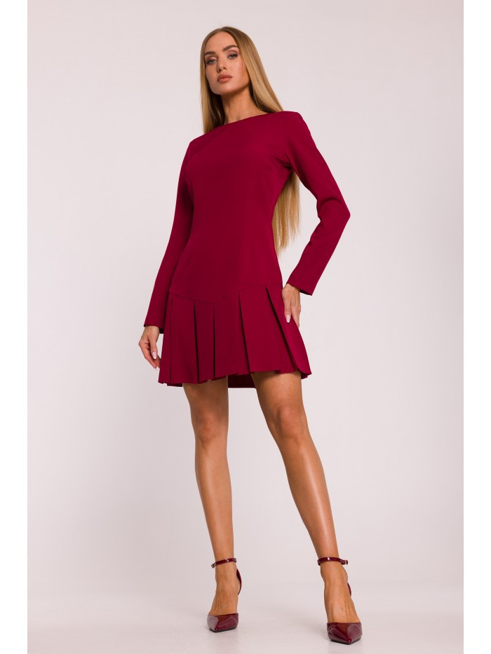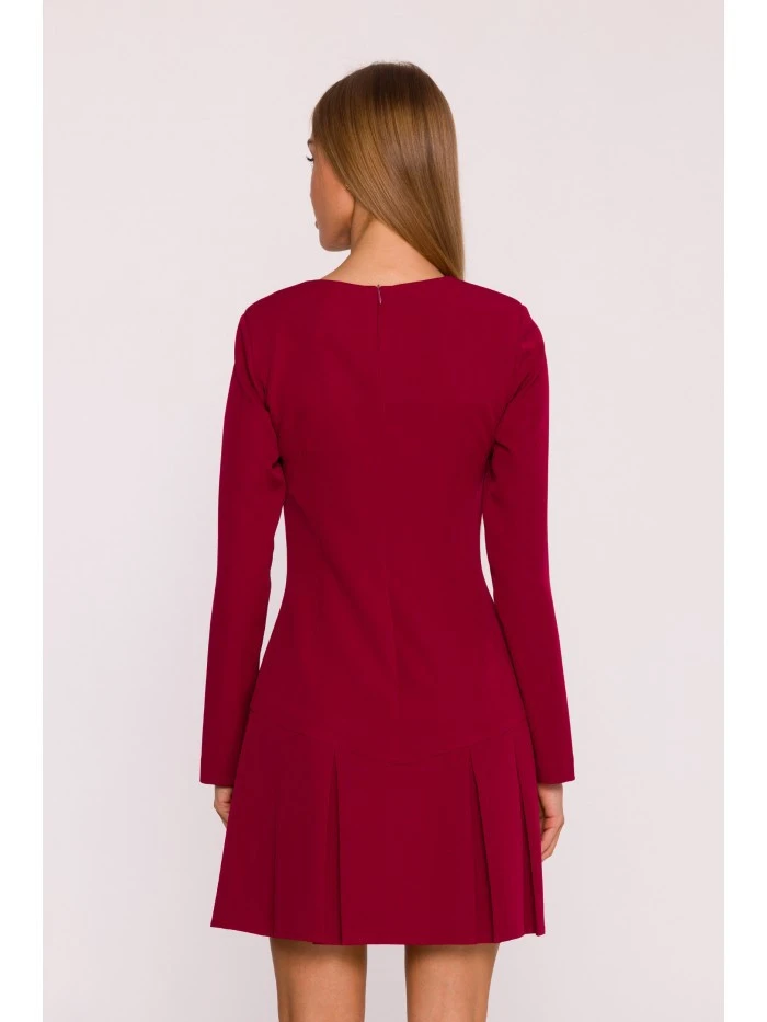 MATERIÁL Tkanina: Hladká tkaná látka s matným povrchem PODROBNOSTI O VÝROBKU Výstřih: Lodičkový výstřih Rukávy: Dlouhé Zapínání: Skrytý zip na zádech Kapsy: Žádné Podšívka: Ne Vzor: Pevný Model: M872 Navrženo a vyrobeno v Polsku Modelka na fotografii měří 171 cm a má na sobě velikost S Střih a střih Střih: Klasický, lehce přizpůsobený s obrácenou skládanou sukní Tvar: Rovný, v pase mírně vypasovaný Délka: Mini