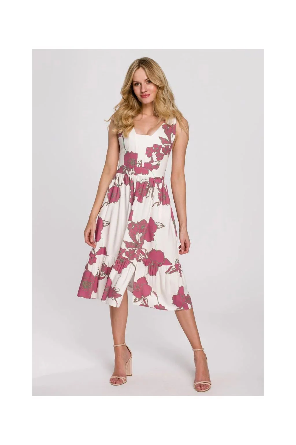 Produkt Dámské šaty model 15753959 - Makover prodáváme v těchto velikostech: Sa barvách bílá s květinovým vzorem5903887622219