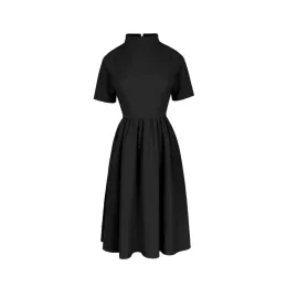 Šaty s přiléhavým horním dílem, reglánovými rukávy a zajímavým ohrnutým límcem. Díky zvýrazněnému pasu a rozšířené spodní části jsou šaty velmi ženské a reagují na každý váš pohyb. Šaty se zapínají na skrytý zip.