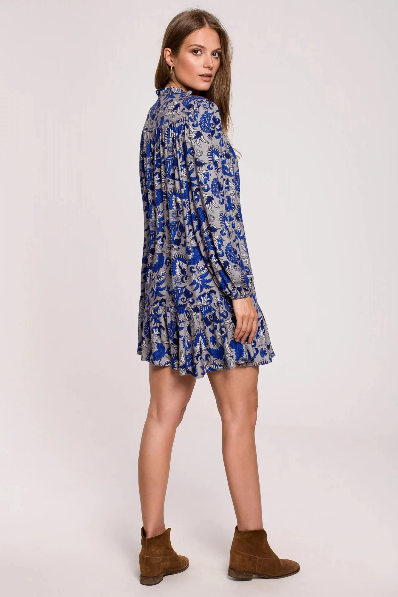 Krásné rozevláté mini šaty se zavazováním ve výstřihu. Má bufetové rukávy zakončené jemnou gumičkou. Šaty jsou bez podšívky. Skvěle se hodí k mnoha podzimním stylizacím. Nebojte se na sebe hodit lehký kabát a zapůsobit svým vzhledem!
