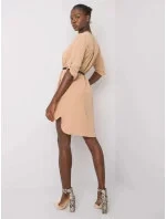 Trendy košilové šaty/tunika s výstřihem do V a manžetami na rukávech. Součástí výrobku je úzký černý pásek. Asymetrický lem vzadu delší. Nepružný a vlnitý materiál.