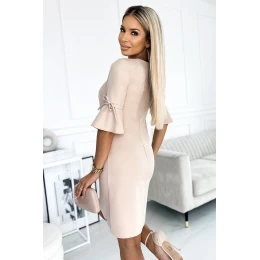 Elegantní šaty 217-7 Numoco - vyrobené z příjemného materiálu - rukávy jsou tříčtvrteční délky, na koncích jsou zdobené volánky a mašličkami - délka sukně ke kolenům