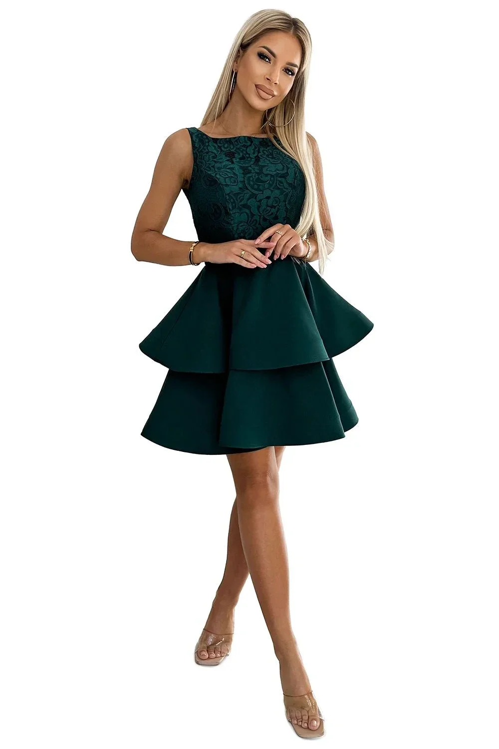 Dámské šaty 205-4 NUMOCO - zelená barva - bez rukávů - délka sukně nad kolena - vyšívaná horní část - dvojitá sukně