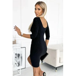 Dámské šaty 529-1 ELEONORA NUMOCO - černá barva - z elastického materiálu se třpytkami - tříčtvrteční rukávy - vykrojení na zádech - vypasované