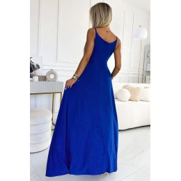 Dámské šaty 299-17 CHIARA NUMOCO - královská modrá barva - s tenkými ramínky - vyprofilovaný dekolt - maxi sukně s rozparkem