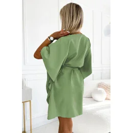 Dámské šaty 287-27 SOFIA NUMOCO - khaki barva - volnějšího střihu "motýl" - tříčtvrteční rukávy - v pase na zavazování - délka ke kolenům