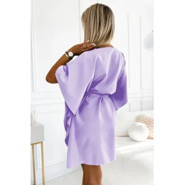 Dámské šaty 287-29 SOFIA NUMOCO - světle fialová barva - volnějšího střihu "motýl" - tříčtvrteční rukávy - v pase na zavazování - délka ke kolenům