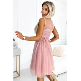 Dámské šaty 522-1 CATERINA Numoco basic - starorůžová barva - z jemného tylu - horní část je bohatě zdobená krajkou - široká ramínka - spodní část je řasená - zadní část je z elastické gumyMateriálové složení: 95% polyester + 5% elastan